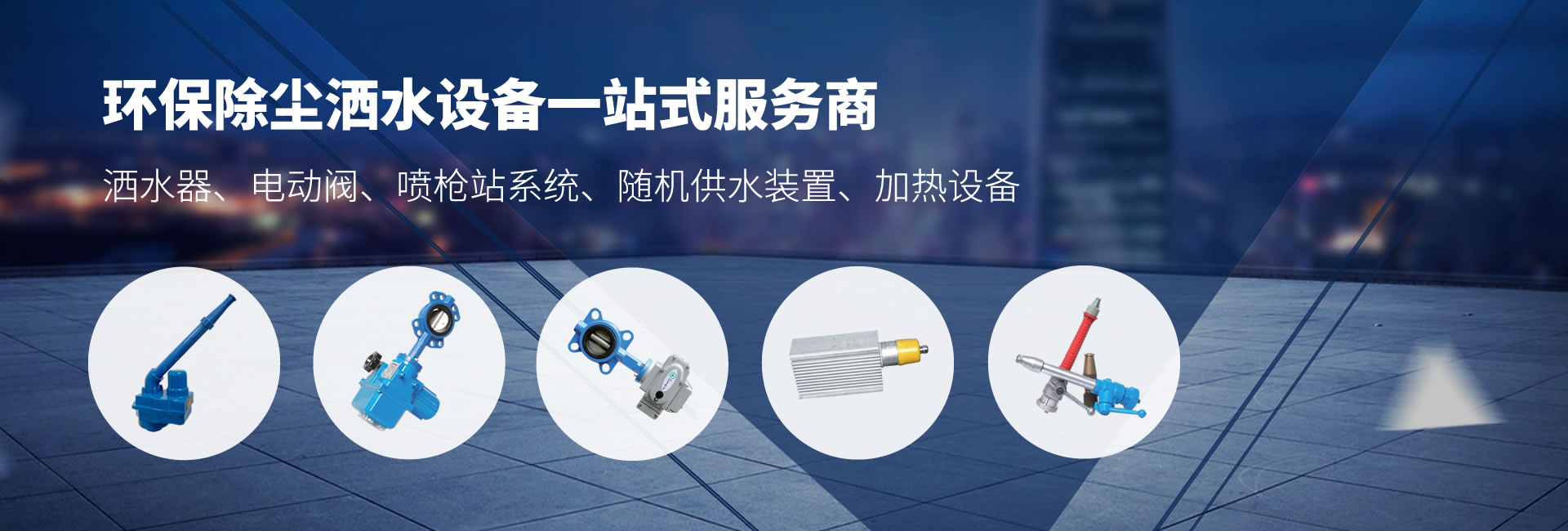01我們是一家集研發(fā)、生產(chǎn)、銷售于一體的環(huán)保灑水除塵設(shè)備廠家。產(chǎn)品分為灑水器、電動閥、灑水供熱設(shè)備、噴槍站系統(tǒng)、隨機(jī)供水裝置。在港口及煤堆場方面的環(huán)保除塵為客戶提供一站式解決方案,讓您選型無憂,省時省心。